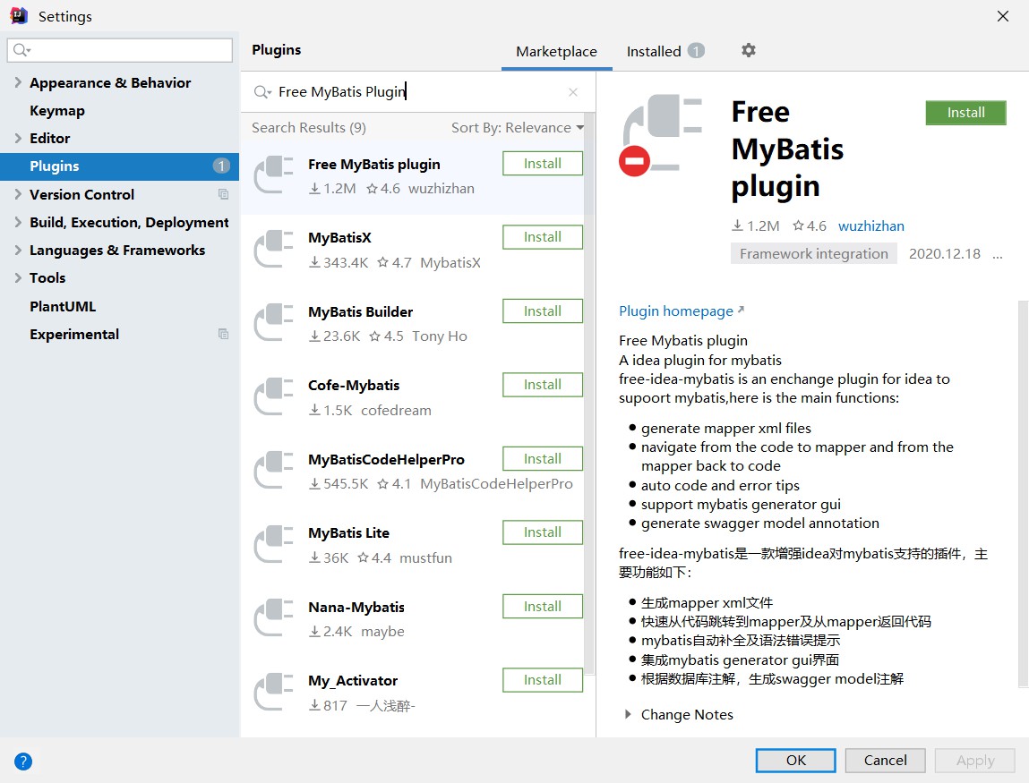 搜索 Free MyBatis Plugin