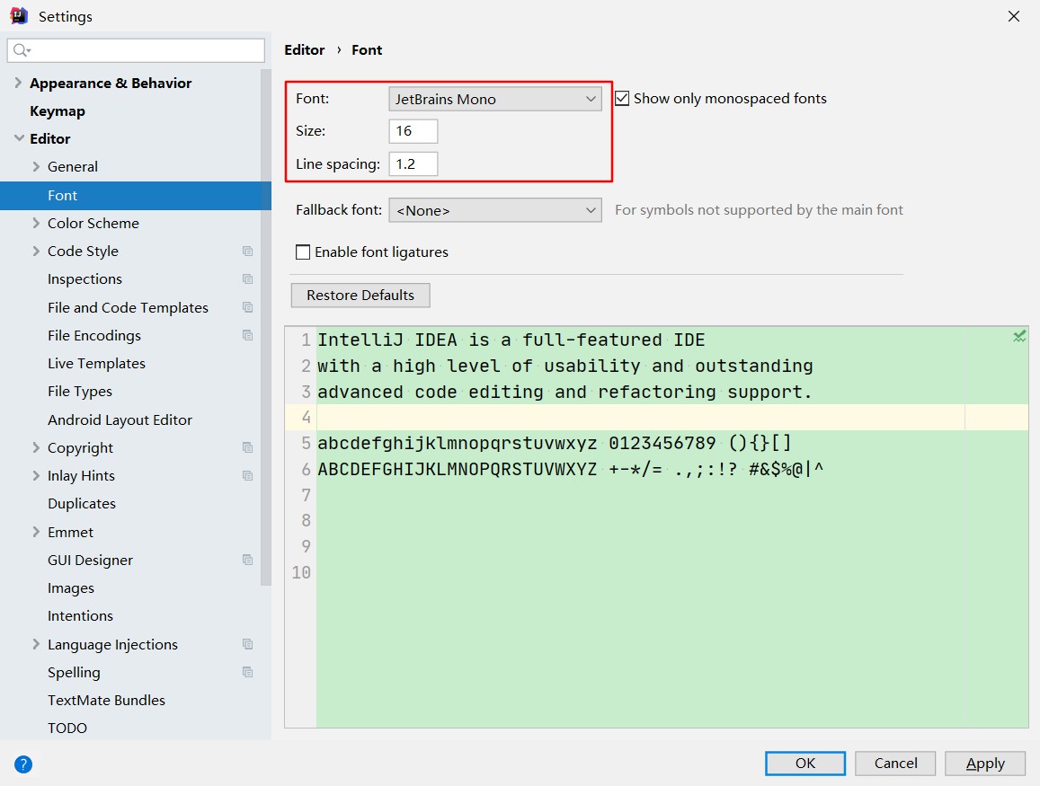 IDEA软件字体大小代码编辑区字体修改:仅仅修改代码编辑区的代码字体大小