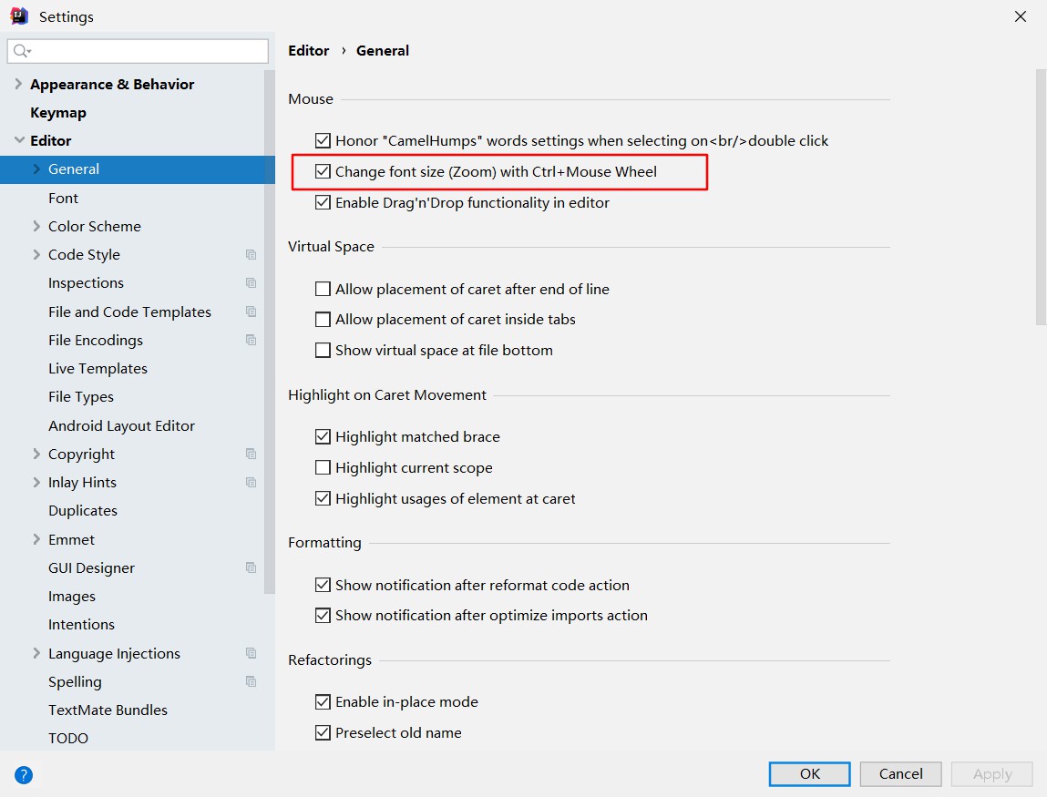 设置之后就通过CTRL +滑动滚轮的方式,调整编辑器窗口的字体大小
