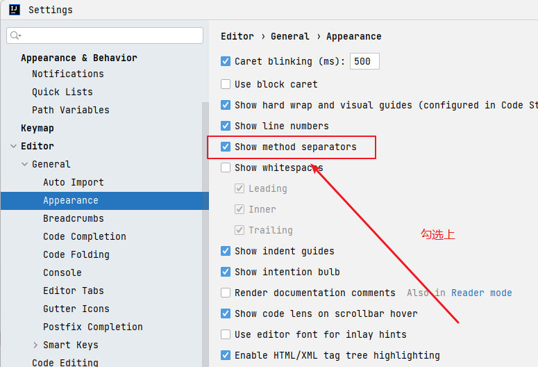Setting -> Editor -> General -> Appearance,勾选上 Show method separators