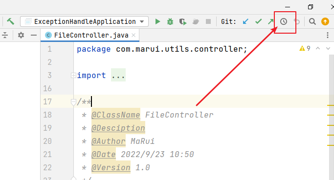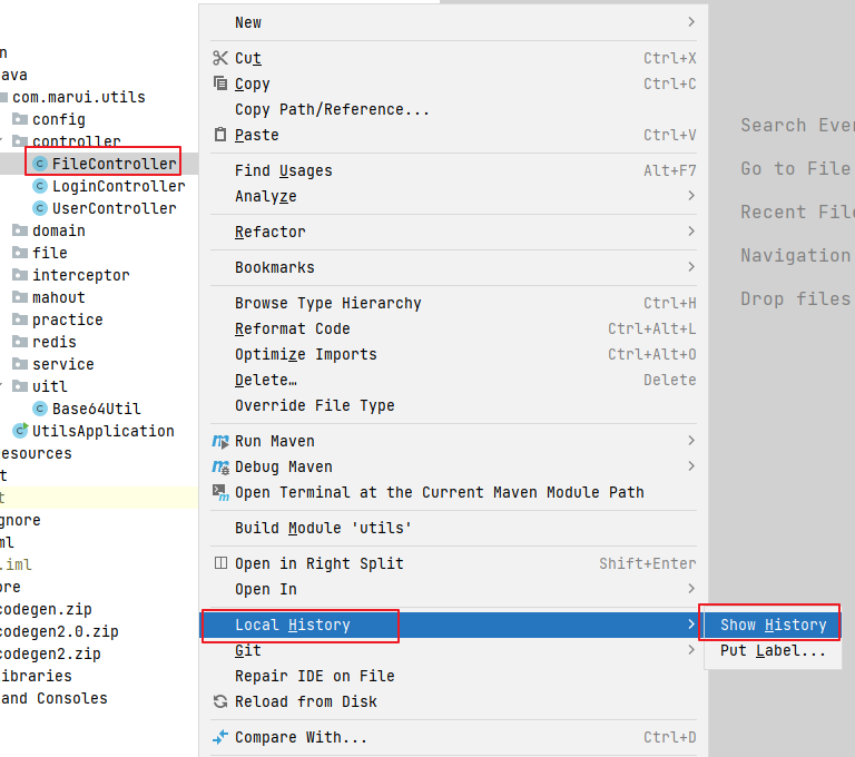 右键单击需要查看历史版本的文件 -> 选择 Local History -> Show History